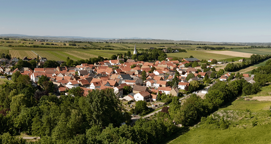 Ruhig gelegen am Ortsrand mit direkter Nähe zu den Weinbergen und hoher Lebensqualität in Rheinhessen.